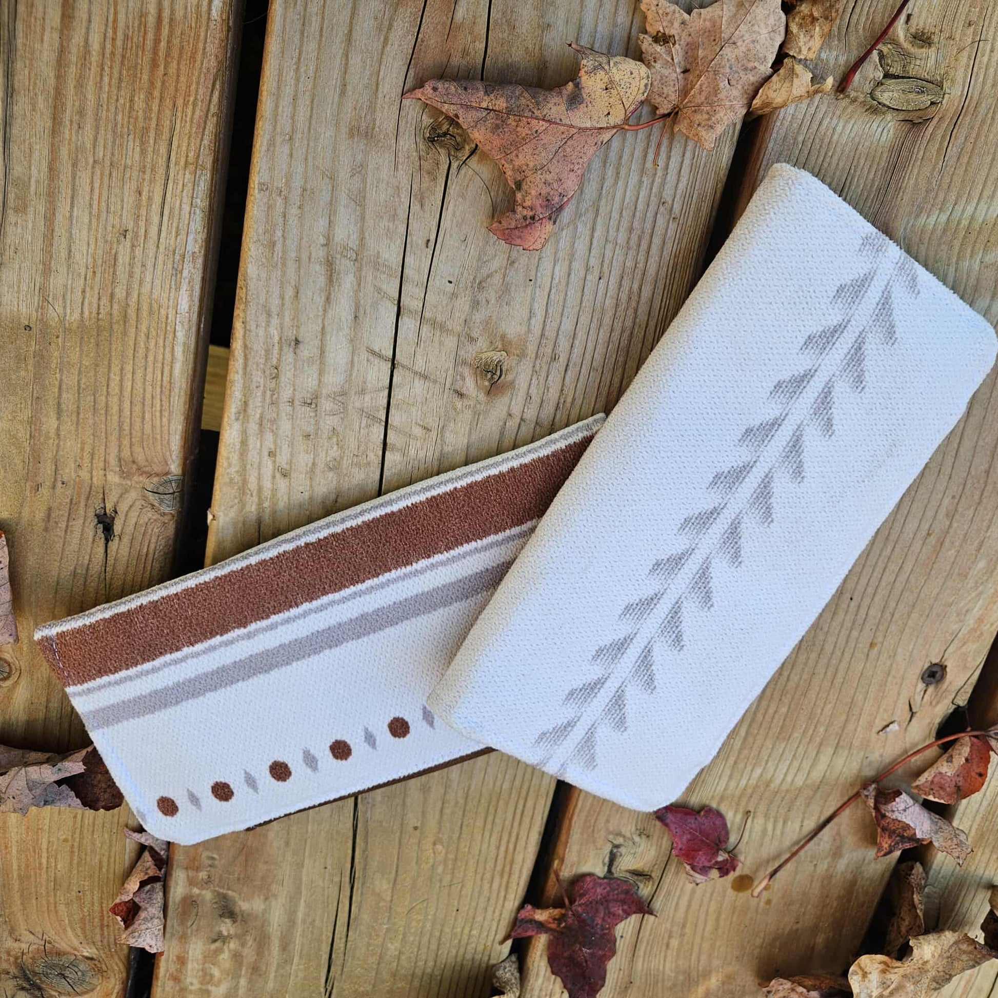 Portefeuille compact 6 espaces - Boho blanc et cognac